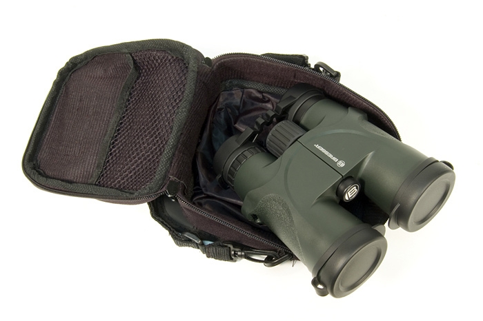 Бинокль укомплектован нейлоновым чехлом, который защищает его от загрязнения при хранении и транспортировке. Для дополнительной защиты линз объективов и окуляров бинокль комплектуется съемными крышками, причем крышки объективов крепятся к корпусу бинокля, что предотвращает их утерю.