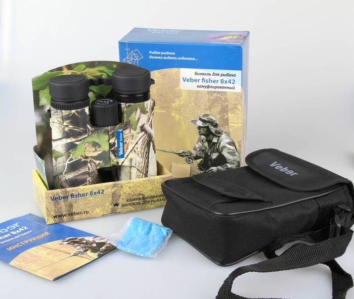 Сделан для рыбаков и учитывает их потребности в оптике, не заставляя переплачивать за лишнюю роскошь. Особенность бинокля- камуфляжный окрас корпуса. Прибор будет стильным дополнением к комбинезону и не позволит "засечь" своего хозяина на "рыбном" месте. У бинокля Veber Fisher 8x42 классическое увеличение - 8 крат. При этом широкое поле зрения позволяет не только легко обнаружить знакомые ориентиры в воде или на берегу, но также и удерживать объекты наблюдений в поле зрения при движении на катере. Светосильные объективы диаметром 42 мм позволят использовать бинокль и в сумерках. Корпус прибора выполнен из противоударного (обрезиненного) пластика. Влагозащищенное исполнение. Бинокль имеет диоптрийную подстройку окуляров под зрение наблюдателя и выдвижные бленды окуляров, благодаря которым можно смотреть в бинокль в очках. Ни один настоящий рыбак не оставит дома такой бинокль!