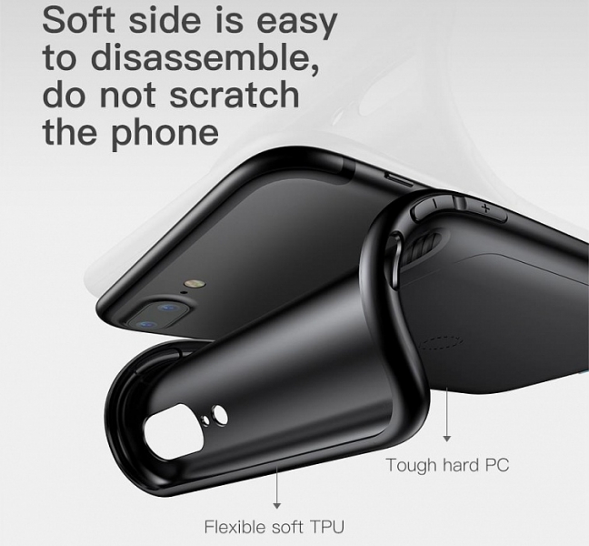 Чехол Baseus Wireless Charging Receive Backclip для iPhone 7 / 8 Baseus Wireless Charging Receive Backclip представляет собой стильный и функциональный чехол-накладку для iPhone 7/8. Он не только обеспечит оригинальный вид и качественную защиту смартфона, но и позволит заряжать его беспроводным методом по технологии QI. Встроенный в накладку QI-чип обеспечит аккумулятор коммуникатора зарядом с силой тока в 1 ампер, полученный беспроводным путем. Также у вас появится возможность устанавливать телефон в чехле от Baseus на магнитные держатели. Стильный и оригинальный чехол-накладка Baseus Wireless Charging Receive Backclip защитит тыльную сторону и ребра вашего iPhone 7/8 от пыли, грязи и механических повреждений. Двухкомпонентная структура, представленная гибким термополиуретаном и высокопрочным поликарбонатом, обеспечит быструю и простую установку накладки, а также продлит срок эксплуатации коммуникатора. Аксессуар имеет заглушку для порта Lightning, которая при необходимости легко извлекается.