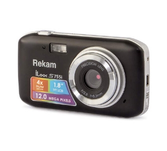 Цифровая камера Rekam iLook S755i (черная) Легкая, миниатюрная фотокамера с разрешением 12 мегапикселей и поддержкой карт памяти до 32 Гб. Автоматические настройки помогут выбрать оптимальный режим для разных условий съемки. Так же камера умеет снимать видеоролики со звуком в формате WAV. На ярком ЖК дисплее удобно просматривать отснятый материал и работать с меню камеры. Легкий корпус камеры имеет плавные, обтекаемые формы и легко умещается на ладони.