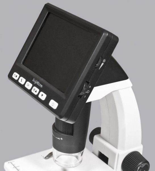 Цифровой микроскоп DigiMicro LCD со встроенным ЖК дисплеем и 5-ти мегапиксельной камерой. Может использоваться для исследования объектов автономно без подключения к компьютеру. Питание от литий-ионного аккумулятора, время работы от одной зарядки до 2-х часов. Изображение исследуемых объектов сохраняется наMicroSD карте памяти нажатием всего одной кнопки в виде фото- или видео файлов. Записанные файлы можно передать на ПК или ноутбук через порт USB 2.0. С помощью AV-выхода возможно просматривать изображения на телевизоре или проекторе, что может быть полезным для конференций, презентаций, а так же в процессе обучения. С помощью специального программного обеспечения DigiMicro LCD может производить измерения линейных размеров, площадей, углов и радиусов исследуемых объектов.