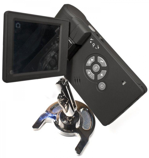 Портативный цифровой микроскоп DigiMicro Mobile со встроенным ЖК дисплеем и 5-ти мегапиксельной камерой может использоваться для исследования объектов автономно без подключения к компьютеру. Питание от литий-ионного аккумулятора, время работы от одной зарядки до 4-х часов. Изображение исследуемых объектов сохраняется на MicroSD карте памяти нажатием всего одной кнопки в виде фото- или видеофайлов. Записанные файлы можно передать на ПК или ноутбук через порт USB 2.0. С помощью специального программного обеспечения DigiMicro Mobile может производить измерения линейных размеров, площадей, углов и радиусов исследуемых объектов.
