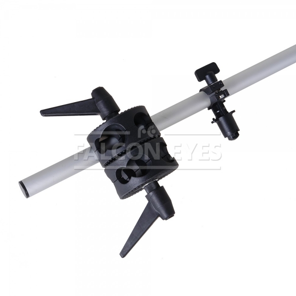 Falcon Eyes RBH-2258 держатель отражателя с поворотной муфтой, которая позволяет устанавливать его на стойки, распорки и другие трубки диаметром: 19, 22, 25 и 28 мм. Муфта обеспечивает надежное крепление и удобное использование (можно регулировать длину плеча штанги для установки груза-противовеса, груз приобретается отдельно). Длина телескопической штанги от 78 до 178 см, 3 секции, на штанге размещены два зажима для отражателя, максимальная длина между захватами 166 см. Держатель можно расположить под любым углом относительно стойки. Штанга держателя изготовлена из металла, муфта из ударопрочного пластика.