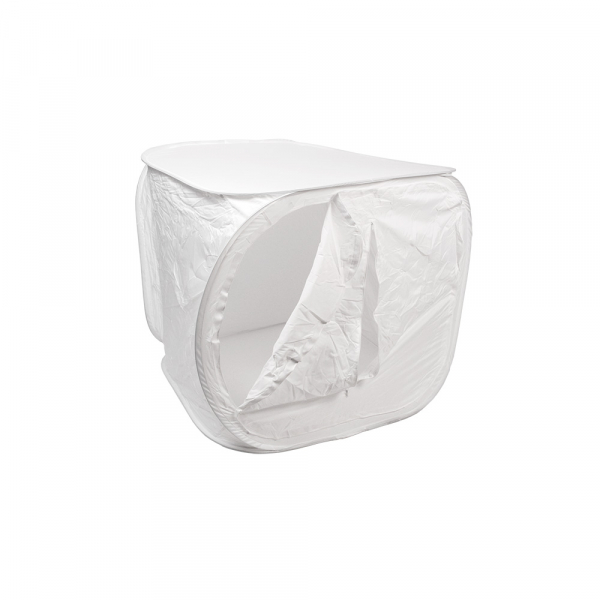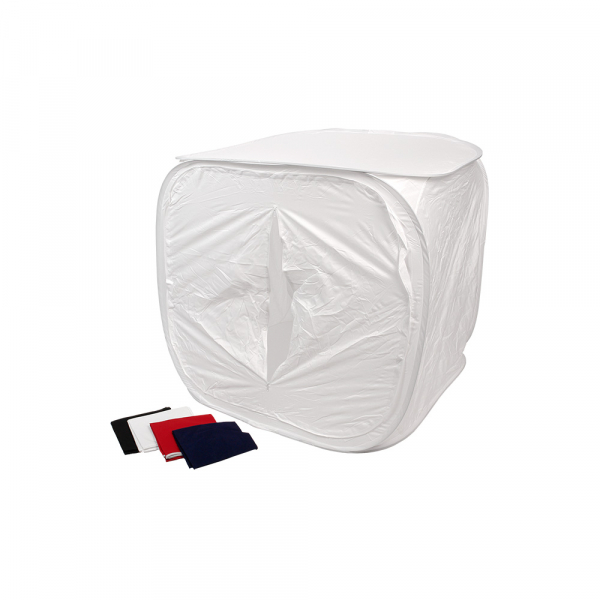 Фотобокс Godox DF-01 120cm Складной фотобокс Godox DF-01 предназначен для предметной и макросъемки, размер фотобокса 120 х 120 х 120 см. Материал фотобокса позволяет получить равномерное мягкое освещение, а изменение угла подсветки сделает возможным формирование любого светотеневого рисунка. Стенки фотобокса выполнены из светопропускающей синтетической ткани, каркасом являются металлические пружины. Съёмная передняя стенка фотобокса с прорезью для объектива. Фотобокс быстро разбирается и имеет небольшой вес, что делает его удобным для использования не только в студии, но и для выездных съемок. В комплекте имеется набор фонов (красный, синий, черный, белый) и чехол для транспортировки.