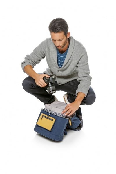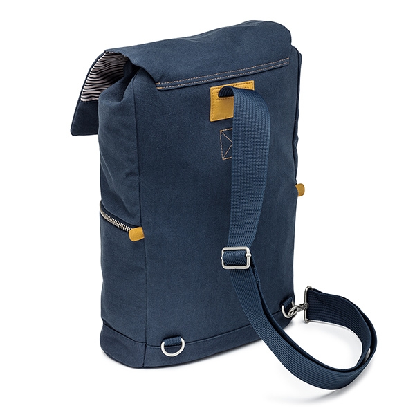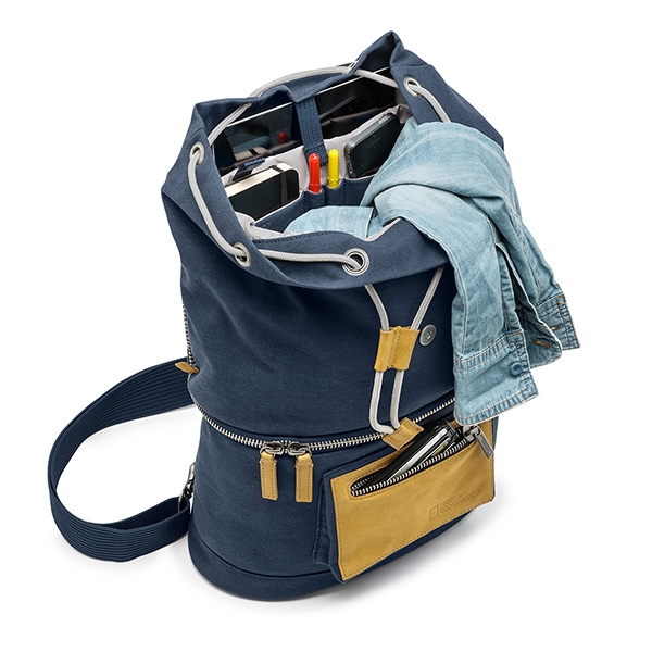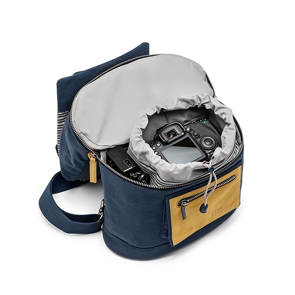 Новая Средиземноморская коллекция. Сочетание глубокого синего цвета со светло-серыми полосками и вставками из натуральной кожи добавляют нотку свежести и создают оригинальный стиль каждой сумке. Повседневный рюкзак-слинг для DSLR камеры с установленным объективом, дополнительным объективом или вспышкой, различных аксессуаров, планшета и личных вещей. Данная модель разделена на две зоны. В нижней части расположена зона с дополнительной защитой для хранения фотокамеры. В комплекте имеется съемный мягкий кофр (16х15х9 см). Размеры внешние 43х32х18 см, внутренние 40х30х15 см. Характеристики: