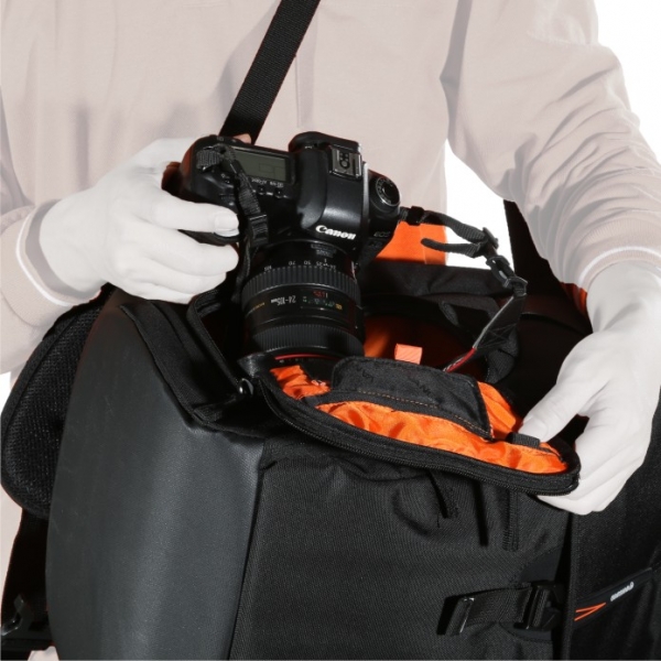 • Вместимость: профессиональная зеркальная камера с объективом типа 70-200/2.8, 3-4 дополнительных объектива, вспышка, аксессуары, ноутбук до 15" и личные вещи