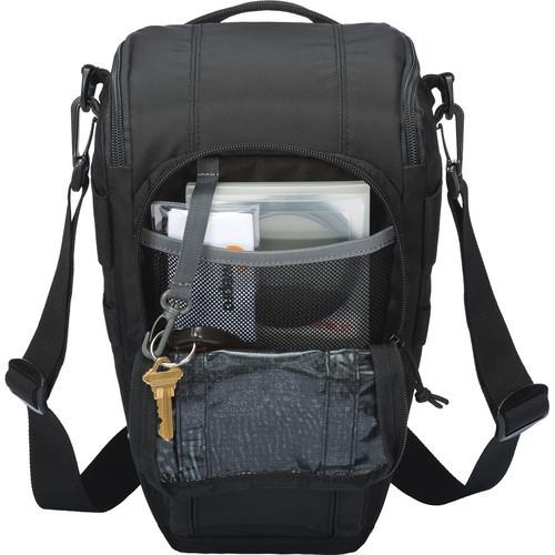 Второе поколение сумок серии LowePro Toploader Zoom 55 AW II предоставляют надежную защиту в течения дня на прогулке, в путешествие или при спортивной съемке. Данная модель обеспечивает быстрый доступ к камере. Сумка оснащена встроенным всепогодным защитным чехлом All Weather AW Cover™ и вместительным фронтальным карманом на молнии для разных полезных мелочей, кошелька или документов. Кроме того, сумку можно носить тремя различными способами - на плече, поясе или с помощью специальной разгрузочной системы Topload Chest Harness. Бегунки застежек-молний имеют специальные D-образные кольца, которые легко открываются и закрываются даже при низкой температуре.