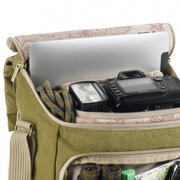 Функциональная повседневная сумка серии Explorer. Предназначена для хранения личных вещей, фотокамеры, дополнительного объектива или выносной вспышки, планшета или ноутбука. В комплекте дополнительный чехол для камеры (17х18х12,5 см). Большое количество маленьких отделений позволит аккуратно разместить различные аксессуары. Предусмотрена установка на тележку или чемодан. Размеры: внешние 25х28х16 см, внутренние 21х26х12,5 см, вес 800 гр.