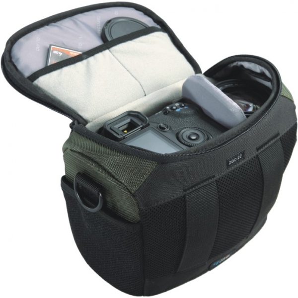 Vanguard 2GO 22 - стильная фотосумка на каждый день, с возможностью быстрого доступа к оборудованию. Ножки расположенные на дне сумки, не только обеспечивают дополнительную защиту, но и отлично дополняют дизайн. Два замка на застежке-молнии позволяют быстро вытаскивать камеру и аксессуары. Подготовка к съемке занимает всего несколько секунд. Кроме этого сумка имеет крепления для поясного ремня, бутылки с водой и небольшой карман для аксессуаров