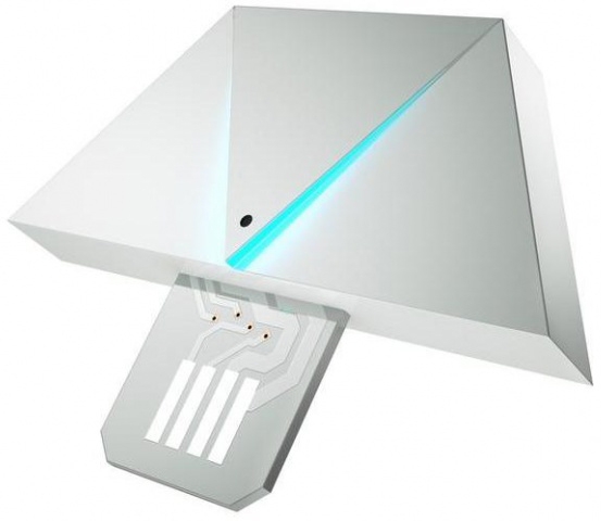 RGBW-панели для умного светильника Nanoleaf Aurora выполнены в форме равносторонних треугольников со сторонами по 210 мм. Соединяются они при помощи специальных креплений, позволяющих использовать любую грань. Такое соединение дает возможность выстраивать 2D-фигуры любой сложности. Модуль Nanoleaf Rhythm полностью соответствует дизайну системы освещения Nanoleaf Aurora и потому идеально сочетается с ней. Он позволяет проигрывать светомузыку в такт той, что играет на устройстве iOS, Android или на любой домашней акустике с разъемом 3.5 мм.