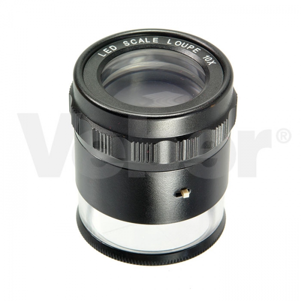 Измерительная лупа Veber MG7173C 10х25 предназначена для линейных измерений на плоскости с помощью перекрестия с проградуированной шкалой, измерения размеров дефектов на поверхностях различных изделий, неровностей, резьб и пр. Лупа применяется в метрологических службах, типографиях, медицине, рентгенологии, приборостроении и других областях. Измерения могут быть осуществлены как в дневном, так и искусственном (LED подсветка) свете с увеличением в 10 крат и с точностью 0,1 мм. Корпус лупы изготовлен из силумина с гальваническим покрытием. Подсветка осуществляется с помощью 8 микросветодиодов, расположенных у основания металлической части корпуса. Горит подсветка только при нажатом положении кнопки. Батареи сменные (4 шт, таблетки, в комплекте), рассчитаны на весь срок службы изделия. Высота прозрачной части корпуса (пластик) — 11 мм. Шкала (стекло, в металлической оправке, нанесена методом фотолитографии, трудноистираемая) крепится на резьбе снизу к прозрачной части корпуса. Технические характеристики