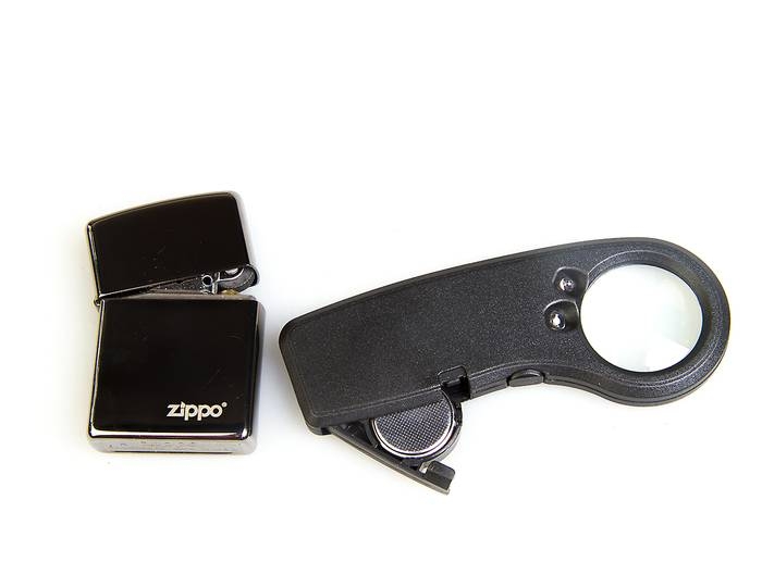 Два светодиода: детектор валюты (голубой), подсветки (белый). Батарейка «таблетка» в комплекте. Технические характеристики Увеличение, крат: 6 Диаметр линзы, мм: 30 Материал линзы: стекло Материал корпуса: пластик Вес, г: 27