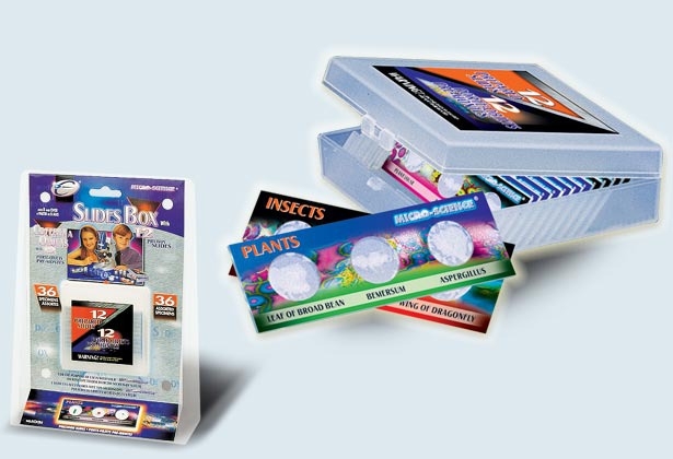 Микропрепараты 36 образцов Набор состоит из 12 стекол. На каждом стекле по 3 микропрепарата. Микропрепараты безопасны для ребенка — стекла запаяны в пленку.