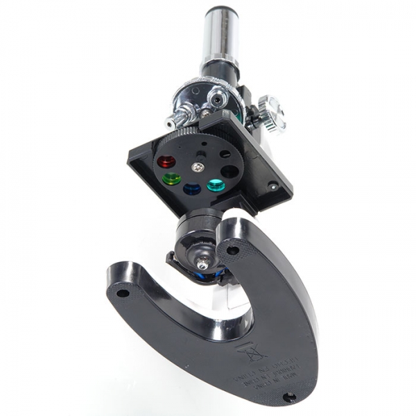 Микроскоп Микромед 100x-900x в кейсе Этот микроскоп с увеличением 100х — 400х — 900х не просто подарок для юного биолога. Это реальный прибор, рассчитанный на длительный срок службы и на интенсивную и интересную «эксплуатацию». Никакой «хлипкости», присущей пластиковым моделям! Если вы настроились на объект и хотите показать его ребенку (или наоборот), будьте уверены — убирая одну руку с ручки фокусировки, а другую с основания микроскопа (вы его придерживаете) фокусировка не собьется и подстройка не потребуется. Удобная система освещения — зеркало и лампочка (на обратной стороне зеркала, включается автоматически при перевороте зеркала). Четыре фильтра и диафрагмы (кольцо на предметном столике) сделают освещение исследуемого объекта наиболее выигрышным для наблюдений. В комплекте масса принадлежностей. Не только инструментов (включая микротом — специальный нож для резки препаратов), но и инкубатор для опытов и сами препараты. Как выращивать живые микроорганизмы подробно описано в инструкции. Главное — не слишком увлечься опытами самому. Все-таки это игрушка для детей, а у вас есть свои — компьютер, смартфон и другие гаджеты. И последнее. Микроскоп, инструменты, препараты упакованы в жесткий подарочный кейс из двойного пластика. Это важно при переездах на дачу или в гости. И микроскоп лежит в ячейке и не будет поврежден, и препараты не перепутаются.Микроскоп имеет металлические основание и держатель тубуса, а подвижная часть (тубус с объективами и окуляром) удобно управляется большой ручкой, которая вращается плавно, с некоторым усилием, без люфтов и мертвого хода.