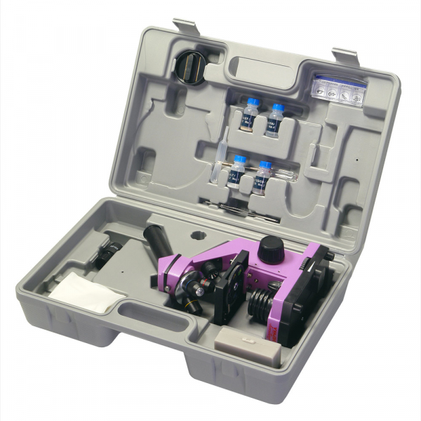 • Эта модель - прекрасный подарок: микроскоп поставляется в кейсе, удобном для переноски; в комплекте с микроскопом - маленькая микролаборатория для самостоятельного изготовления препаратов