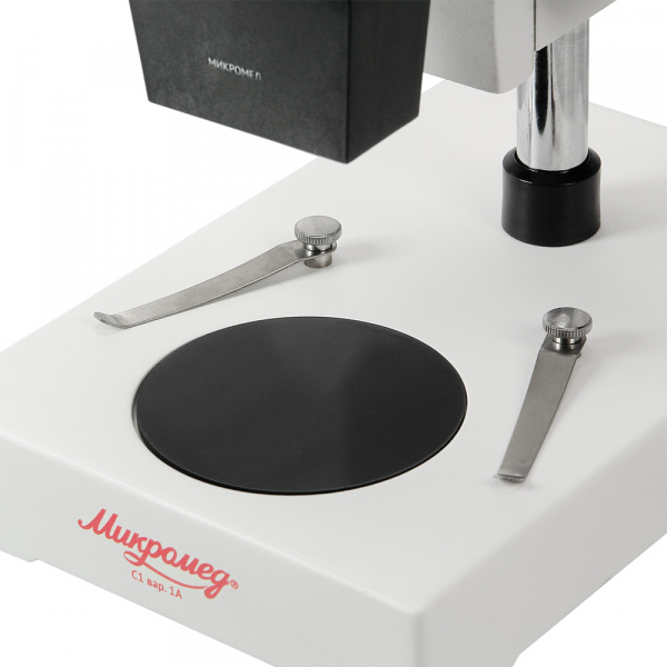 Микроскоп стерео Микромед МС-1 вар. 1А (4х) Стереоскопический микроскоп Микромед МС-1 с увеличением 40х относится к классу инструментальных микроскопов и рекомендован к применению в электронике, для проверки и разборки точных и измерительных инструментов, в обучающих экспериментах, для проведения исследований и точных технологических операций. Микроскоп предназначен для школ, исследовательских институтов, промышленных предприятий и домашнего использования. Микроскоп формирует правильное (неперевернутое) объемное изображение, регулируемое межзрачковое расстояние и диоптрическая коррекция помогут настроить микроскоп под себя. Благодаря большому рабочему расстоянию 60 мм, микроскоп позволяет исследовать объемные объекты, например образцы минеральных камней, монеты, ювелирные изделия. Колесико грубой фокусировки расположено на корпусе и имеет ход 40 мм. Все оптические элементы изготовлены из качественного стекла с высоким коэффициентом пропускания света. Микроскоп не требует покупки батареек или питания от сети, для наблюдений используется естественное освещение. Предметный столик съемный двухцветный, для удобного исследования на контрастном фоне его можно развернуть черной или белой стороной вверх. Клеммы с пружинным механизмом позволяют удобно расположить препарат на предметном столике.