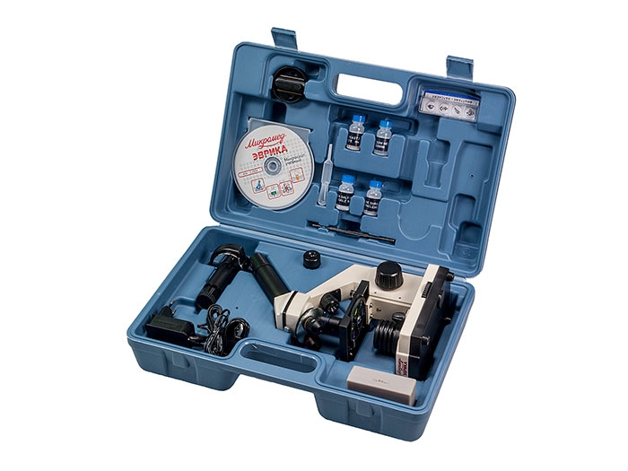 • Микроскоп школьный Эврика 40х-1280х с видеоокуляром в кейсе