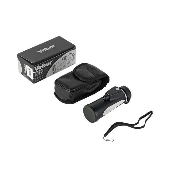 Монокуляр Veber 8х42 WP с компасом Монокуляр Veber 8х42WP с компасом имеет обрезиненный, азотозаполненный, защищенный от воды и пыли корпус. В оптической системе монокуляра используется стекло марки BAK4, обладающее большим коэффициентом преломления, что позволяет уменьшить светохроматизм по краям поля зрения. Высококачественная оптика с многослойным просветлением дают изображение без каких-либо искажений. Удобное кольцо колесо фокусировки с дозированным усилием поможет быстро сфокусироваться. Длинный рабочий отрезок окуляра и поворотно-выдвижной наглазник (Twist-Up) позволят вести наблюдение в обычных или солнцезащитных очках. Дальномерная шкала в поле зрения позволяет приблизительно определить расстояние до объекта (если известны его размеры). Также в поле зрения находится шкала встроенного компаса, шкала подсвечивается через матовое окошко в корпусе.