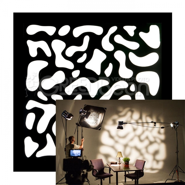 Гелевые маски имитируют различные эффектные тени (жалюзи, мозаика, арочное окно, пальмовый лист и т.д.). В комплекте 10 насадок с теневыми структурами. Гелевые маски отличаются от масок гобо тем, что они используются дальше от прибора освещения, они не располагаются в точке фокуса между источником света и линзами, поэтому им не нужно быть теплостойкими. Гелевые маски производят более мягкие края, чем гобо. Различные узоры помогут имитировать интересную обстановку, например маска с пальмовыми листьями добавит в сцену тропическую атмосферу, а свет прошедший через маску с рисунком "жалюзи" поможет передать чувство времени и места. Использование дополнительных цветных гелевых фильтров даст эффект теплых солнечных утренних или закатных лучей (цветные фильтры приобретаются отдельно).