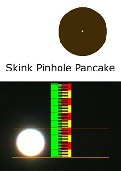 Характеристики:1. Skink Pancake выполнен из высококачественной нержавеющей стали. Максимальный диаметр отверстия: 20мм Фокусное расстояние: 44мм (расстояние от пинхола до пленки или сенсора камеры) Угол обзора: 52° 2. Пинхол толщиной 0.03мм выполнен из высококачественной нержавеющей стали. Для удобства использования помещен между двумя пластинами размером 20мм. Отверстие пинхола абсолютно круглое, что позволяет добиться оптимального результата. Диаметр отверстия: 0.3мм Диафрагма: f/147 3. Zone Plate позволяет получить эффект "свечения". Для удобства использования помещен между двумя пластинами размером 20мм. Центральная зона: 0.296мм / 296 µm Разработан под фокусное расстояние 44мм Количество зон: 13 Диафрагма: f/56 4. Zone Sieve позволяет получить эффект "гало" - светящийся ореол вокруг объекта. Для удобства использования помещен между двумя пластинами размером 20мм. В отличие от стандартной Zone Plate, данная пластина содержит только 2 концентрических круга с относительно небольшими отверстиями, которые при ясной солнечной погоде или при съемке контрастных объектов создают эффект ореола на освещенном предмете или в отражении воды. Центральная зона: 0.296мм / 296 µm Разработан под фокусное расстояние 44мм Количество зон: 5 (включая 2 пунктирные зоны вокруг центральной) Диафрагма: f/91