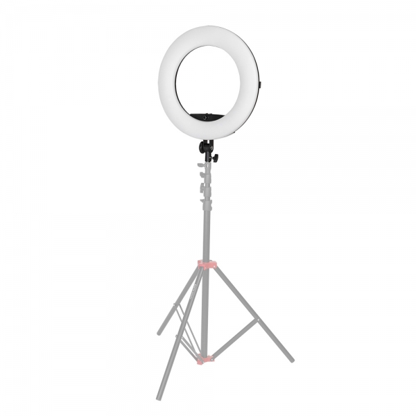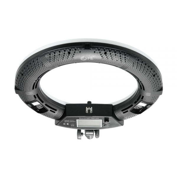 Светодиодный осветитель BeautyLight 480 LED представляет собой легкий и компактный осветитель с источником света в виде кольцевой панели диаметром 45 сантиметров с 480 светодиодами мощностью 96 Вт. Благодаря такой форме свет распределяется равномерно, освещая скрытые тенью участки.