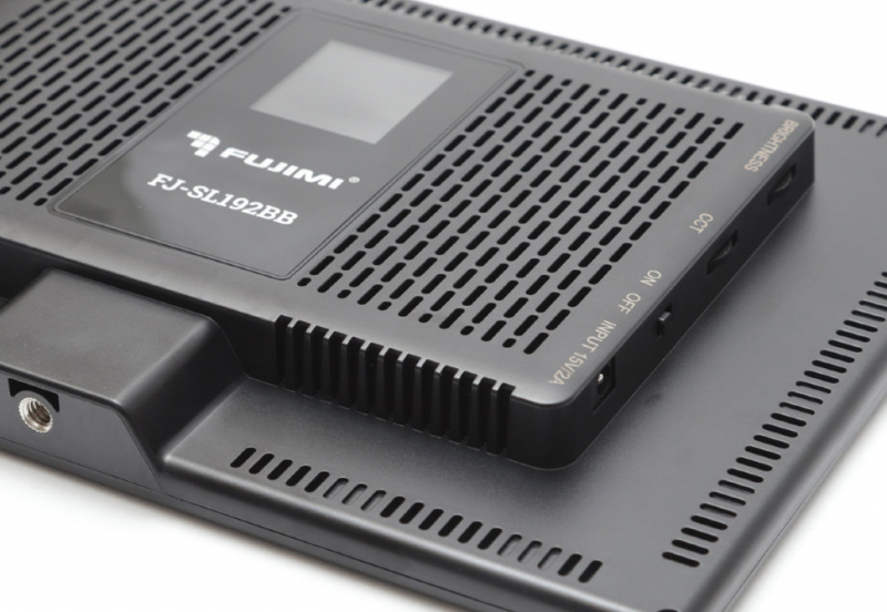 Fujimi FJ-SL192BB - это новая тонкая конструкция светодиодной панели. Имеет по 96 светодиодов теплого цвета (3200К) и холодного цвета (5600К) типоразмером 2835, используя технологию задней подсветки, устройство дает более мягкое освещение. Яркость может регулироваться 0 до 100%, цветовая температура - от 3200К до 5600К, что позволит удовлетворить требования разнообразных съемочных площадок. Оборудованный кронштейном, мягкий свет можно наклонять вперед/назад на 180º, что делает его более широко используемым. Высокоэффективная схема управления питанием через источник постоянного тока делает работу каждого светодиода более эффективной. Оснащен ЖК дисплеем, где удобно представлена информация о текущей яркости, мягкости света и о батарее. Встроенный 29,6 Вт/ч литий-полимерные батареи обеспечивают 1,5 часа беспрерывного освещения и требуют всего 2 часа для полного заряда через 15В2А зарядное устройство.