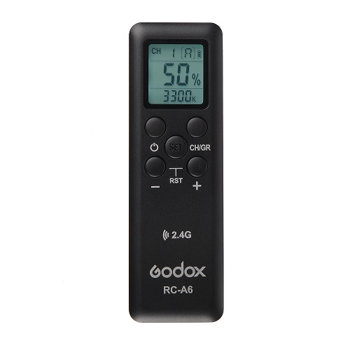 Осветитель комплектуется пультом дистанционного управления с цифровым дисплеем, работающим на частоте 2.4 ГГц (16 групп и 32 канала). Пульт управления помогает на расстоянии регулировать мощность яркости светового потока и задавать световые спецэффекты в режиме постоянного источника света. Питается от двух батареек ААА (в комплект не входят). Встроенная система беспроводного управления Godox X 2.4G осветителя В режиме вспышки дает возможность вести съемку с использованием пультов-радиосинхронизаторов серий XPro, X2 и XT32, которые приобретаются отдельно. Приемник Godox 2.4G (система X) совместим с камерами Canon, Nikon, Sony, Fuji, Panasonic, Olympus и Pentax.