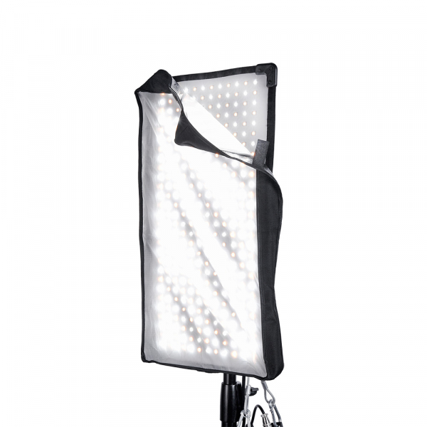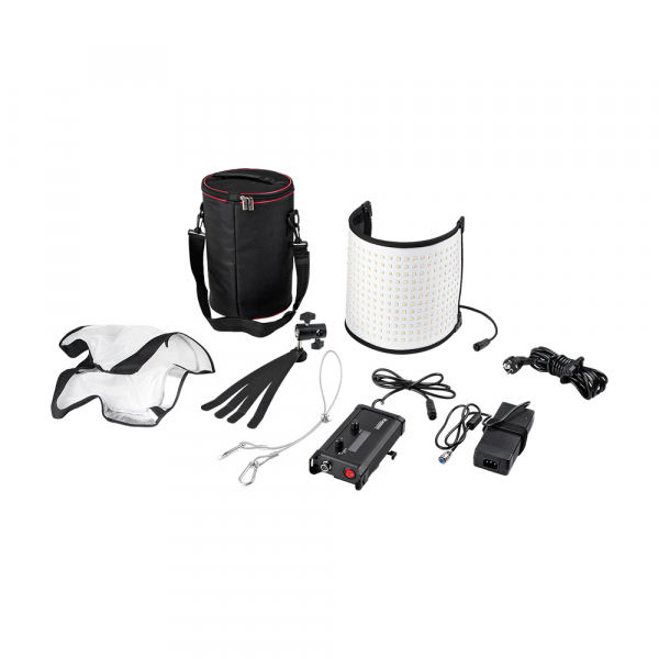 Гибкая и ударопрочная панель осветителя FreeLight 336 bi-color, защищенная от пыли в лаги по стандарту IP67, позволяет использовать прибор в самых неблагоприятных условиях вне студии. Мощности 336 современных сверхярких SMD светодиодов (CRI более 96) будет достаточно для решения большинства задач съемки. На обратной стороне панели находится кабель (длинной около 60 см) для подключения к модулю управления и «липучка» для крепления светорассеивателя.