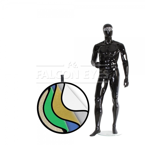 Круглый отражатель 7 в 1: золотистый/серебристый/белый отражающий/ белый просвечивающий/серебристые и золотистые полоски/зеленый/синий. Рабочий диаметр 56 см. Используется в предметной и портретной съемке, а также для подсветки участков кадра. Конструкция состоит из пружинного стального обруча с натянутой на него полупрозрачной рассеивающей тканью и чехла на молнии со светоформирующими поверхностями. Золотистая поверхность придает отраженному свету золотистые тона, добавляет теплого света в сцену. Серебристая поверхность используется для получения жесткого света, что позволяет получать контрастное изображение с четкими тенями. Высокий коэффициент отражения делает эту поверхность одной из часто используемых, найдет применение даже в пасмурную погоду. Белая отражающая поверхность позволяет получить равномерный и мягкий световой поток для подсветки теней и выравнивания светотеневого рисунка, используется как заполняющий источник. Не искажает цветовую температуру источника освещения. Просвечивающая ткань рассеивает проходящий сквозь нее световой поток от вспышки и равномерно освещает объект съемки увеличенной площадью излучения. Таким образом, резкий точечный свет, излучаемый при срабатывании фотовспышки, преобразуется в достаточно мягкий световой поток, излучаемый с большей площади. Золотисто-серебристые полоски модифицируют световой поток от источника в эффективный умеренно теплый и мягкий световой поток, перенаправляемый на объект съемки. Зеленый и синий применяются для съемки по технологии хромакей. Стальной упругий каркас прошит по периметру капроновым карманом, диаметр отражателя в сложенном виде – 20 см.