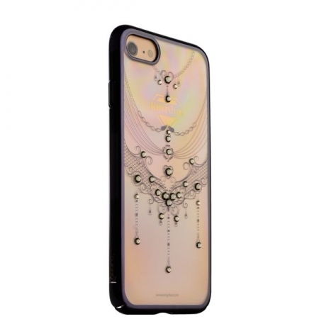 Пластиковый чехол-накладка от KAVARO - отличное решения для защиты корпуса iPhone 7. Аксессуар выполнен из хромированного пластика, и красивые отражения на нем создают впечатление, что KAVARO 79G сделан с использованием драгоценных металлов. Прозрачная задняя часть этого чехла декорирована оригинальным орнаментом и инкрустирована переливающимися стразами Swarovski. Аксессуар отлично дополняет дизайн смартфона, выглядит стильно и богато, защищая ваш iPhone 7.