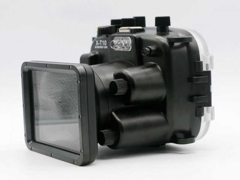 Подводный бокс (аквабокс) Meikon для фотоаппарата FujiFilm X-T10 (16-50 мм) Meikon Fujifilm X-T10 (16-50) подводный бокс (аквабокс) для фотоаппаратов Fujifilm X-T10 с объективом 16-50 мм - выполнен из сверхпрочного поликарбоната с дополнительными ребрами жесткости повышающими крепкость бокса на глубинах до 40 метров. Внешнее покрытие пластика не скользит в руках. Бокс полностью поддерживает все функции фотокамеры, включая и работу с внешними подводными вспышками через два оптических порта, имеет датчик протекания. Удачная эргономика бокса позволит Вам легко управлять фотоаппаратом даже в подводных перчатках.