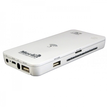 Главной «изюминкой» портативного проектора Merlin Pocket Projector Wi-Fi является именно присутствие Wi-Fi, которое позволяет вывести компактные проекторы на новый качественный уровень среди устройств для демонстрации презентаций.