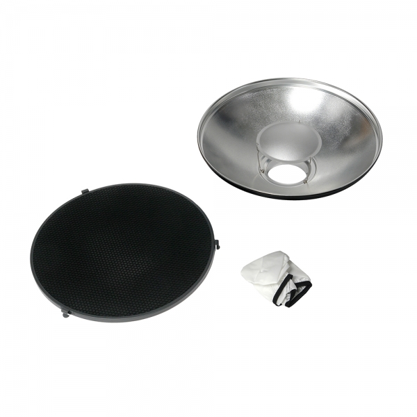 Портретная тарелка Falcon Eyes SSA-SRB42 Тарелка портретная Falcon Eyes SSA-SRB42 устанавливается на байонет SS и применяется для смягчения светового потока. Данный вид рефлекторов получил признание фотографов-портретистов во всех жанрах съемки. Формирует умеренные по глубине и жесткости тени, обеспечивая рассеивание без избыточной резкости. Эти свойства приобретаются благодаря дефлектору, импульс света отражается от него и попадает на отражающую поверхность самой тарелки. Регулируемый дефлектор устанавливается в двух положениях, что позволяет выбирать результат действия тарелки. Рефлектор изготовлен из металла. Кайма по краю предназначена для установки различных модификаторов, в комплекте сотовая насадка и тканевый рассеиватель.