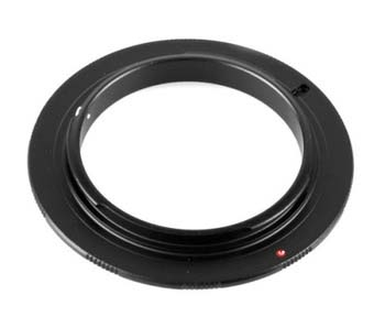 Реверсивный адаптер предназначен для макросъемки. Позволяет присоединить объектив к фотоаппарату в перевернутом положении. Адаптер накручивается на резьбу для светофильтра и устанавливается в фотоаппарат. Благодаря реверсивному адаптеру вы сможете снимать мелкие объекты с большим увеличением, пользуясь штатным объективом и не тратя много средств на дорогие макрообъективы. Можно использовать объективы сторонних производителей (диаметр под светофильтр на объективе должен совпадать с реверсивным переходником). Необходимо учитывать, что при работе с данным адаптером не будет работать автофокус и прыгающая диафрагма, значение диафрагмы не будет передаваться камере. Возможно ручное (в некоторых случаях полуавтоматическое) управление. Из-за снижения светосилы усложняется наводка на резкость.