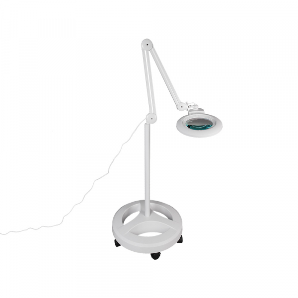 Штатив напольный для Луп-ламп Veber 8608D V3 Напольный штатив предназначен для установки луп ламп Veber с подсветкой (8608D LED Bi-color, 8608D 5D, 8608D 3D/5D, 8608D ). В основании штатива находится 6 вращающихся роликов со стопорами, которые позволяют легко перемещать штатив по полу помещения. Основание массивное (вес около 7 кг) — поэтому, можно быть уверенным, что лампа не перевесит и не упадёт даже в самых крайних позициях. Штатив позволяет быстро направить и зафиксировать любое положение осветителя относительно рабочей зоны. Благодаря напольному штативу, диапазон установки осветителя по высоте составляет от 72 до 150 см. Установка лампы-лупы на штатив: палец пантографа лампы-лупы просто вставляется в отверстие стойки; таким образом осветитель имеет возможность вращаться на 360° - это удобно когда необходимо оперативно ввести или вывести осветитель из рабочей зоны. Купить штатив напольный для Луп-ламп Veber можно рекомендовать, например, косметическим и маникюрным салонам, тату-студиям и т. д, так как благодаря высокой мобильности, передвигать лупу-лампу можно по всему помещению, а при необходимости быстро убрать из рабочей зоны мастера. Штатив изготовлен из стали, декоративный колпак-крышка из пластика.