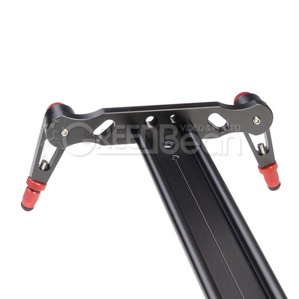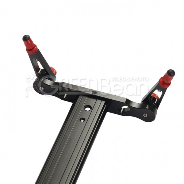 Поворотные ножки оборудованы подпружиненными зажимами с зубчатым соединением, благодаря этому слайдер выдерживает большие нагрузки с гарантированной устойчивостью. Ножки раскладываются в пределах 360 градусов, позволяя хранить слайдер в футляре без снятия ножек. На концах ножек находятся выкручивающиеся нескользящие резиновые наконечники, которые обеспечивают точное выравнивание слайдера по уровню горизонта, а пузырьковый уровень на площадке поможет проверить настройку.
