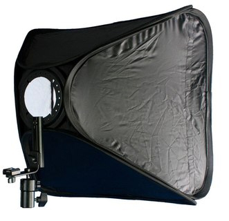 Быстроразборный софтбокс для камерных вспышек размер 50x50 см. Крепление на стойку с держателем вспышки. |