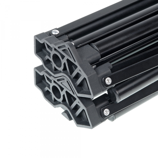Стойка-тренога Falcon Eyes FlatStand 2000BAC для фото/видеостудии Новый дизайн Конструкция стойки позволяет складывать её опоры таким образом, что в сложенном состоянии стойка занимает существенно меньше места в отличии от стоек классической конструкции. Минимальная толщина стойки Falcon Eyes FlatStand 2000BAC в сложенном состоянии составляет всего 6 см. Более того, устройство (механизм) стойки позволяет соединять стойки в сложенном состоянии меду собой (с помощью клипсового механизма, стойки должны быть одинакового размера). Таким образом, вы можете сэкономить место и время— сложенные между собой стойки можно перенести за один подход. Примечание: не рекомендуется соединять между собой более пяти стоек, так как клипсы соединений не рассчитаны на нагрузку свыше 5 кг. Максимальная рабочая высота стойки 200 см, в сложенном состоянии длина стойки 71 см. Диаметры секций стойки: 25, 22, 19, 16 мм. Диаметр ножек 19 мм. В рабочем положении размах ножек стойки составляет 72 см. Амортизация Механизм воздушной амортизации обеспечит безопасную эксплуатацию и предохранит оборудование от повреждений. Три секции надежно соединяются между собой винтовыми зажимами. Регулируемая по высоте база с треногой. Секции стойки-треноги изготовлены из алюминиевого сплава, а зажимы, крестовины и рукоятки - ABS пластик. Шаровая голова Для установки камер или другого оборудования на стойку, в комплекте предусмотрена съёмная шаровая мини-голова Купить стойку-треногу Falcon Eyes FlatStand 2000BAC мы рекомендуем фотографам и операторам, которым важна компактность их оборудования на выездных съёмках.