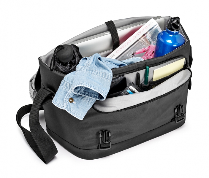 Многофункциональная сумка для повседневного использования. Съемный чехол для защиты фотокамеры, отделения для 15'' ноутбука, различных аксессуаров и личных вещей. Съемный чехол, оснащенный системой защиты Manfrotto, позволяет безопасно переносить DSLR камеру с установленным зум-объективом и дополнительным объективом. Регулируемый плечевой ремень. Молния в верхней части сумки обеспечивает быстрый доступ к содержимому. Характеристики