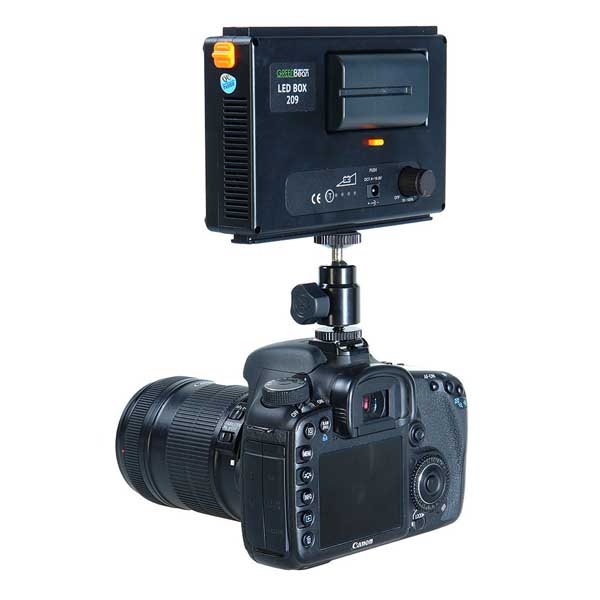 GreenBean LED BOX 209 представляет собой плоский источник света с расположенными по всей площади 209 яркими светодиодами. Прибор воспроизводит мягкий и яркий пучок света с цветовой температурой 5600К (дневной свет), в комплекте фильтр 3200К (лампа накаливания). Компактный и легкий корпус с тонкой рамкой. Толщина корпуса всего 50 мм (с установленными аккумуляторами), благодаря этому его можно использовать там, где будет трудно разместить обычный осветитель. Сверху и снизу на корпусе находятся салазки, для соединения нескольких приборов GreenBean LED BOX 209 в группу. Конверсионный и рассеивающий фильтры, фиксируются с помощью магнитных защелок и значительно расширяют возможности осветителя. Малое энергопотребление и тепловыделение обеспечат экономичную и комфортную работу.