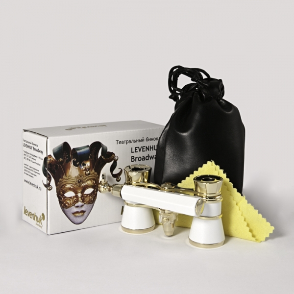 Levenhuk Broadway – бинокли, незаменимые в театральном мире, где каждая мелочь и каждая деталь на сцене имеет значение, и пропустить что-то совсем не хочется. Театральный бинокль – не просто украшение, он помогает насладиться зрелищем или постановкой во всей ее полноте. Для театральных биноклей характерно изящное дизайнерское исполнение. Так, Levenhuk Broadway 325N – серия биноклей, которые намекают на утонченный вкус владельца, поскольку сочетание черного или белого цветов с золотым всегда считалось классикой. А лакированная поверхность корпуса делает бинокль просто роскошным. При этом он компактный и почти невесомый – легко прячется даже в миниатюрной театральной сумочке. Чтобы Вы не потерялись в темноте и быстро нашли свое место в зале, разработчики предусмотрели подсветку светодиодом. А для того, чтобы настроить бинокль по резкости, необходимо воспользоваться центральной фокусировкой. Выдвижная ручка лорнета позволит каждому пользователю подстроить бинокль под себя. В комплект поставки входит, кроме бинокля, мешочек для хранения, салфетка из замши и руководство по использованию.