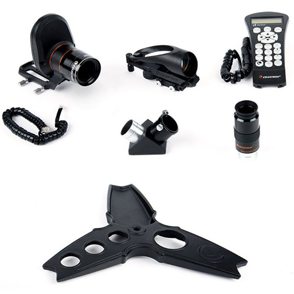 Телескоп NexStar Evolution имеет встроенные большие эргономичные ручки управления телескопом. Это позволит вам быстро в ручную навести телескоп на любой объект. Цельнометаллический штатив имеет металлический лоток для аксессуаров с углублениями для хранения окуляров и переноски штатива. Храните до 7 окуляров в двух дополнительных лотках, один с регулируемой красный светодиодной подсветкой. Во время установки штатива специальные метки на штативе помогут вам быстро выставить штатив по уровню.