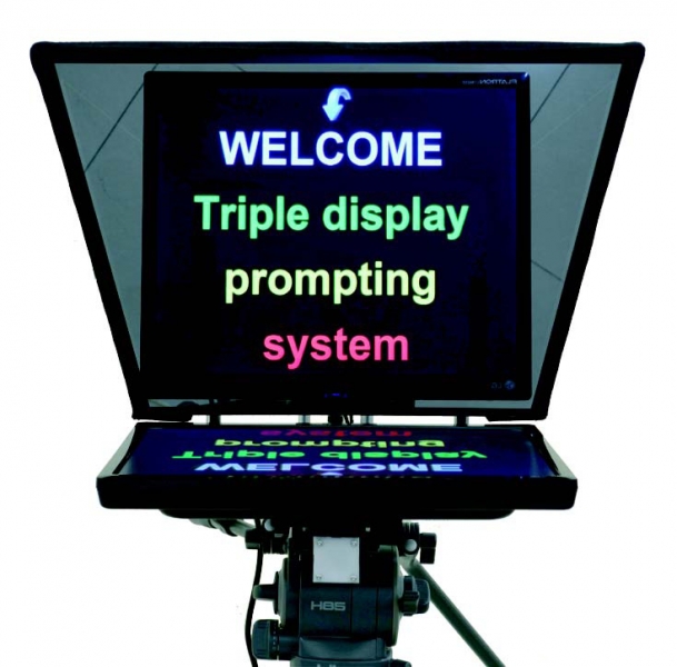Предназначен для проекции текста на полупрозрачное стекло (прозрачность 70%) , расположенное перед объективом видеокамеры. Телесуфлер оснащен специальным швейцарским стеклом, спектр пропускания которого обеспечивает идеальное воспроизведение цветов при съемке и т.д. В комплекте поставляется цветной LCD-монитор 17”. Титры полностью отражаются в направлении диктора, не попадая в формируемый камерой видеосигнал.