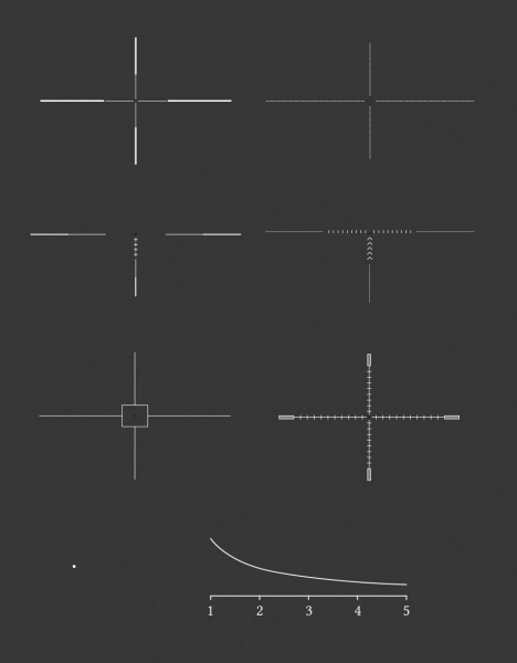 В прицеле предусмотрено семь стилей и четыре цвета (чёрный, белый, зелёный и красный) прицельной сетки. Внешний вид и цвет сетки настраивается в зависимости от предпочтений стрелка и условий наблюдения. Кроме того, отдельно к прицельной сетке можно включить дальномерную шкалу.