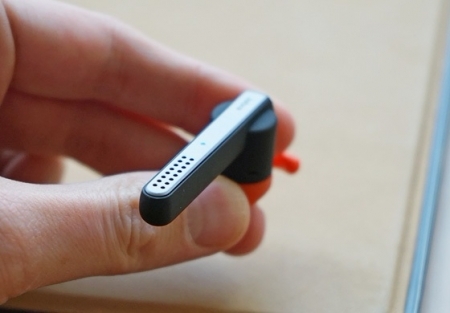 • Также обращает на себя внимание необычная форма корпуса, благодаря которой вес гарнитуры (8 г.) при ношении практически не ощущается;